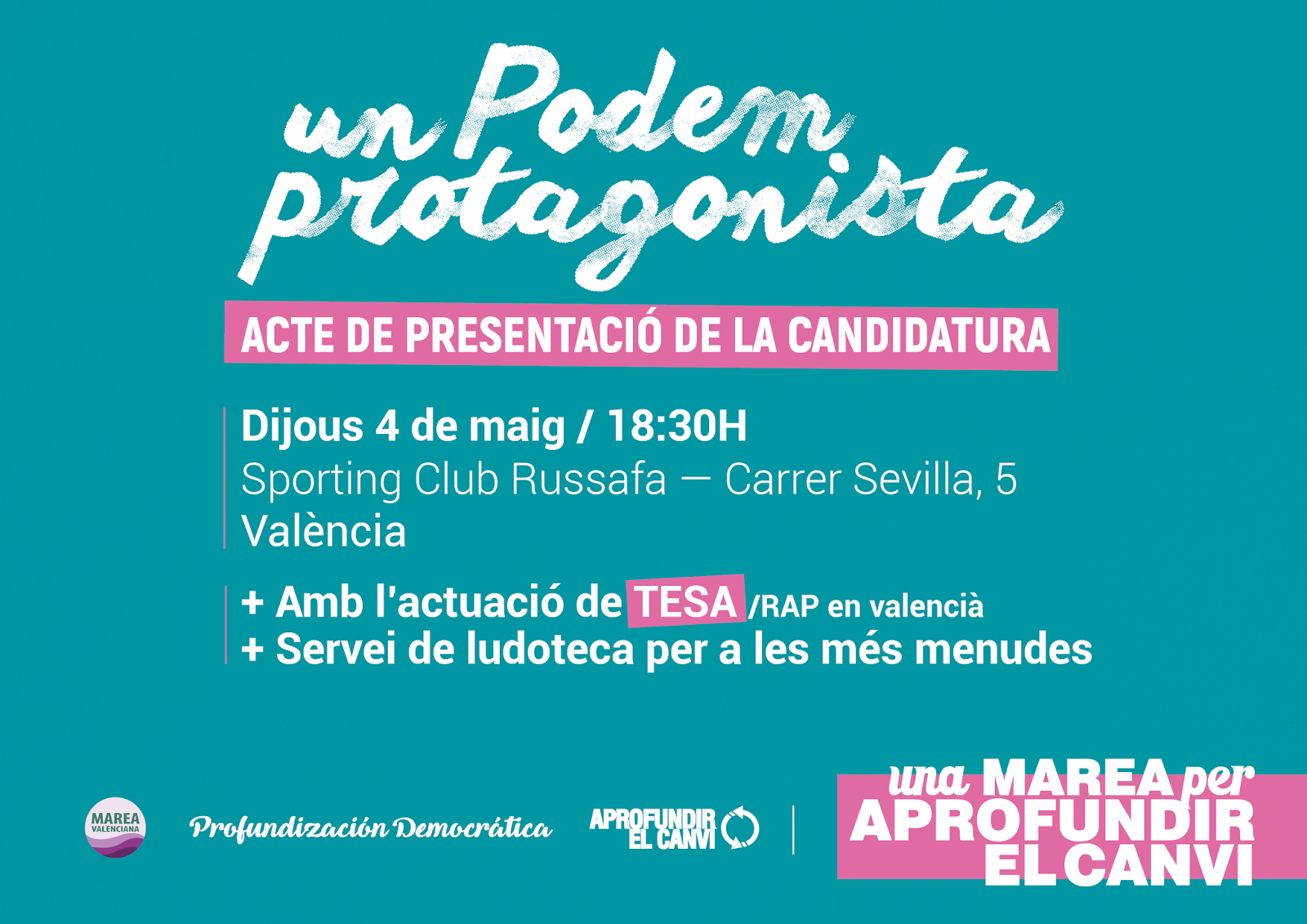 La candidatura ratificó su acuerdo después de haber transaccionado los documentos políticos de Aprofundir el Canvi y Marea Valenciana, que ambos coincidían en hacer una crítica y una propuesta de rectificación del papel de Podem en les Corts Valencianes y de la necesidad de revisar el Acord del Botànic para hacer una evaluación; y de los documentos organizativos de Aprofundir, Marea y Profundización Democrática (que no presentaba documento político), donde se dibuja un modelo de partido radicalmente democrático, con mecanismos de descentralización efectiva, con nuevos órganos como el Consell Territorial o el Foro de Coordinación Intercomarcal, y con mecanismos de rendición de cuentas de la dirección y los cargos como la Trobada Valenciana, de carácter semestral, donde la militancia podrá fiscalizar el trabajo del partido.