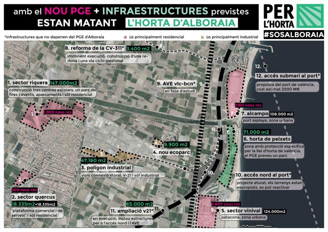 Per l’Horta renueva, además, su petición de suspensión de la tramitación del planeamiento en su redacción actual y que se retrotraigan las actuaciones para llevar a cabo un nuevo proceso de participación conforme a un Plan de Participación Pública efectiva y transparente donde se evalúen las diferentes alternativas para mejor satisfacer las necesidades de la población en el marco del interés general y atendiendo a la prudente administración de los recursos naturales y económicos disponibles. Y que una vez concluido ese proceso y obtenido un documento de consenso, se lleve a cabo una nueva evaluación ambiental del conjunto de los referidos instrumentos.