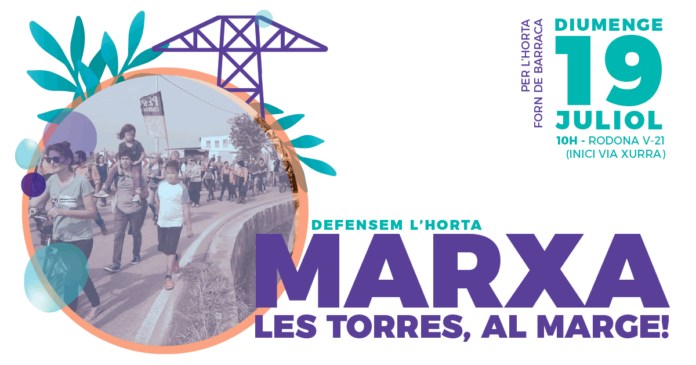 Demà diumenge 19 a les 10 hores hem convocat una marxa per reclamar al Ministeri de Foment que situe les torres elèctriques al marge dels camps, no al centre. Visitarem el camp on una familia porta 6 dies vigilant que no entre maquinaria al seu camp a plantar la torre elèctrica prevista.