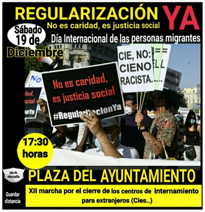 Será un día de lucha y reivindicaciones en el cual queremos exigir al Gobierno de España, la Regularización Ya de las más de 600 mil personas que se encuentran actualmente en el territorio español de forma administrativa irregular y les decimos alto y claro que NO ES CARIDAD ES JUSTICIA SOCIAL.