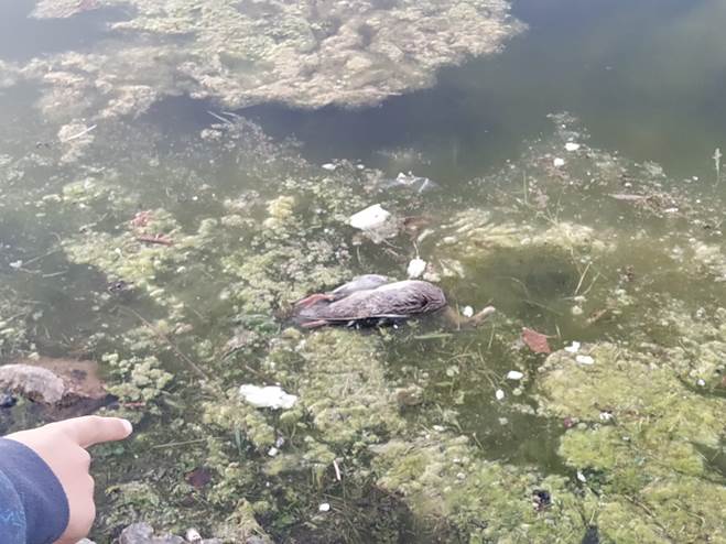 DE NUEVO MUEREN AVES EN EL LAGO DEL PARQUE DE LAS CRUCES (CARABANCHEL ALTO) POR LA MALA GESTIÓN DEL AGUA DEL LAGO