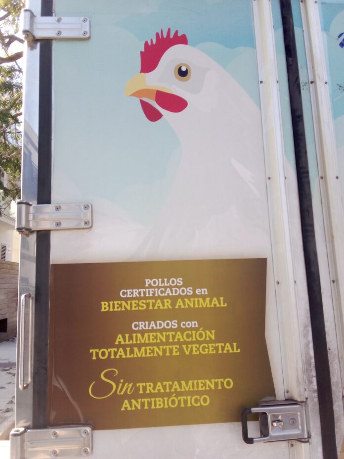 Según nos comenta, ese sello no es más que un paripé para aliviar malas conciencias y que la gente pueda comprar sin remordimiento, pero que en realidad más allá de obligar a nacer y morir contra su voluntad a estos animales, son de crianza selectiva viviendo toda su corta vida sin ver la luz del sol en naves industriales y entre sus propios excrementos manipulados genéticamente para acudir al matadero cuando tienen 40 días siendo engordados rápidamente mediante proceso industrial.