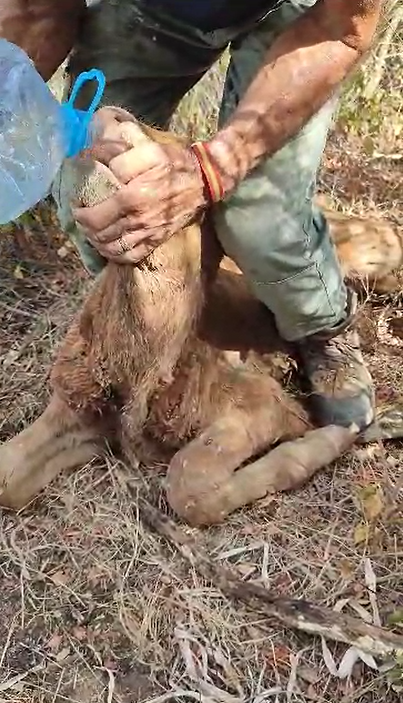 vídeo en el que se aprecia cómo un vecino suministra agua a un ternero