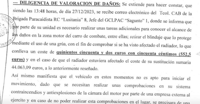 Según estimaciones contenidas en el citado atestado policial, realizadas por mandos militares de la base General Almirante (Marines), sede del Regimiento Lusitania al que pertenece el blindado VRC Centauro B1 objeto de la acción, la pintura rosa fácilmente lavable con agua que vertieron los payasos, podría haber llegado a dañar el motor del vehículo de combate hasta el punto de hacer imposible su regreso al acuartelamiento por estar inutilizable el radiador, los sistemas contra incendios y antiexplosiones, todo ello por una valor estimado superior a los 44.000€. La acusación por delito de “Daños”, castigada con penas-multa de entre 8-12 meses, podría estar agravada al ser el objeto de los daños una máquina de guerra y conllevar incluso penas de cárcel de entre 2 y 4 años.