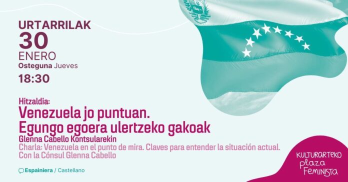 Venezuelan benetan gertatzen ari dena gertutik ezagutu, gezurrak deseraiki eta hausnarketa zintzoa bultzatzeko, «VENEZUELA JO PUNTUAN: EGUNGO EGOERA ULERTZEKO GAKOAK» hitzaldira gonbidatzen zaituztegu.