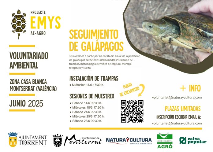 Per assolir este repte, hem convocat sis jornades de voluntariat amb la col·laboració de Natura y Cultura Servicios Ambientales, l’Ajuntament de Montserrat i l’Ajuntament de Torrent, municipi on, degut a l’estat en què ha quedat el barranc de l’Horteta arran de la DANA, no es realitzarà en 2025 el Projecte Emys. La primera de totes serà el pròxim dimecres 11 de juny, a les 17.30 hores, quan col·locarem les trampes amb les quals realitzarem este estudi.