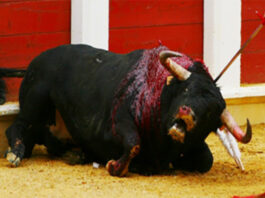 Activistas muestran el infierno animal en plenas fallas de Valencia